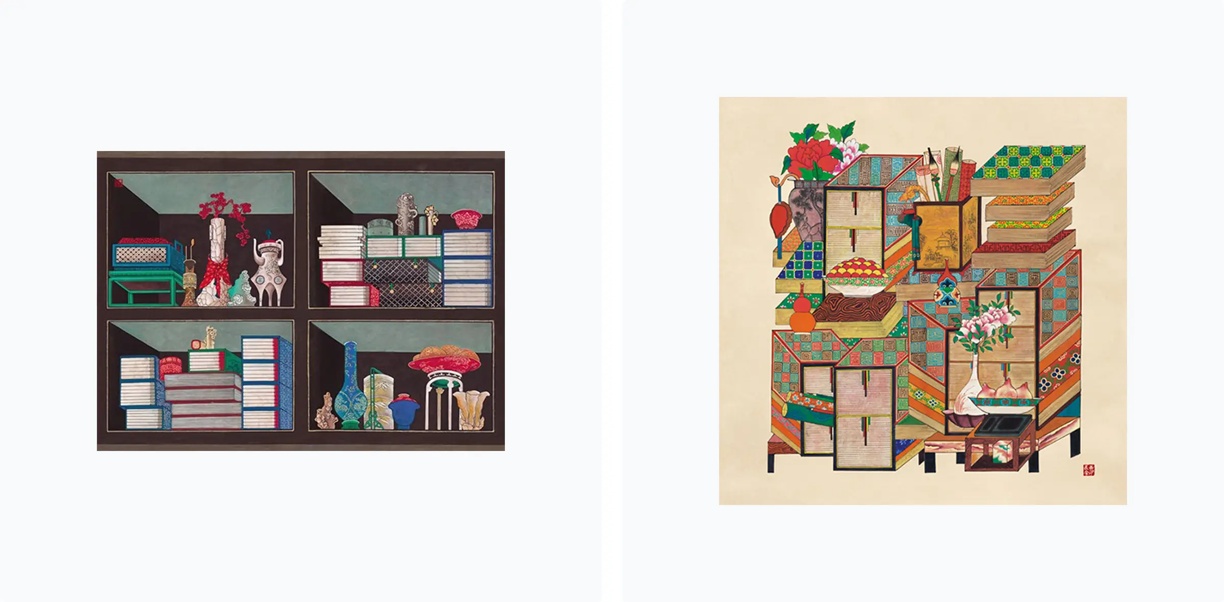 왼쪽부터 책가도 2폭 1, 문방도 S1