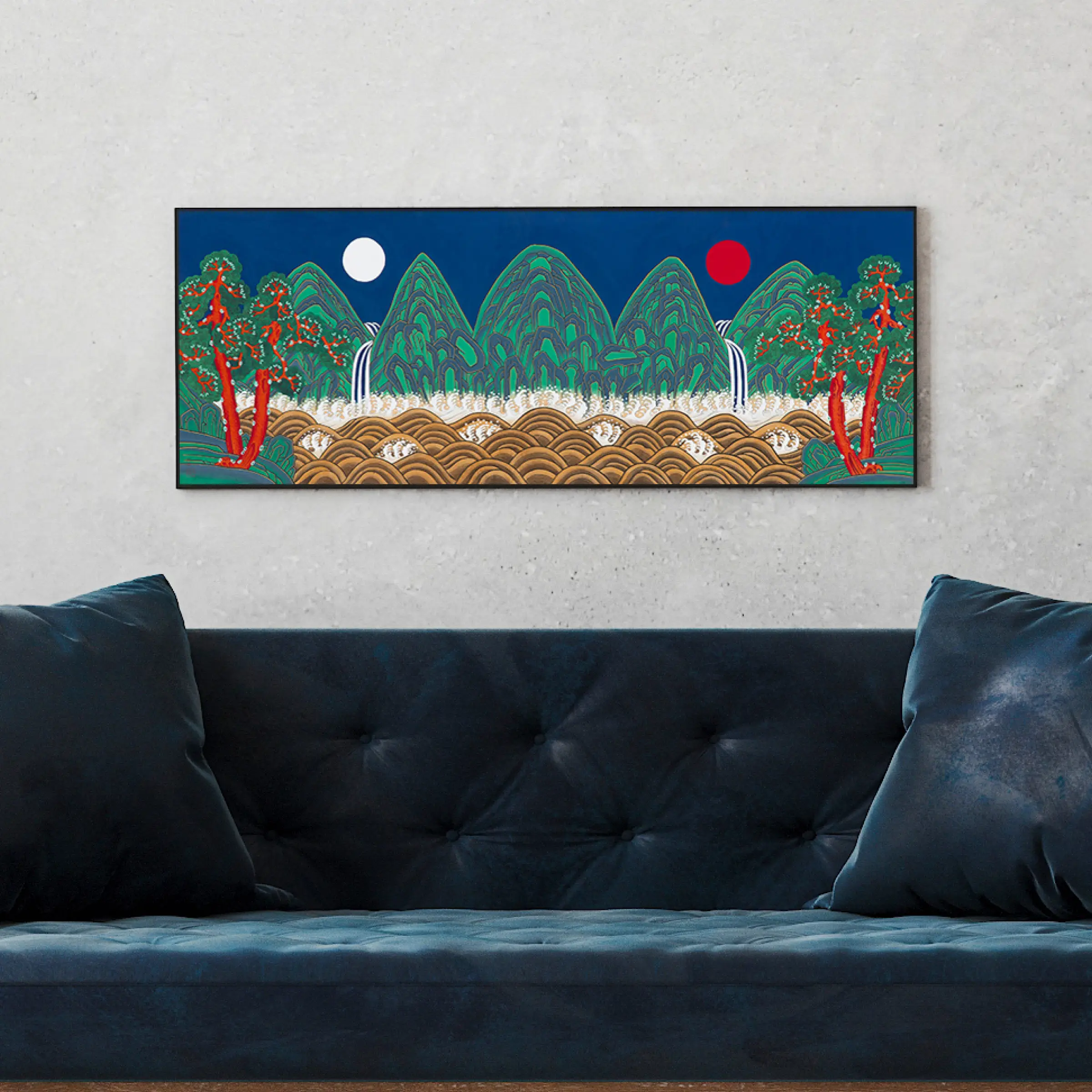 전통민화를 현대적인 감각으로 재해석한 독창적인 작품으로 무채색의 일상공간을 더욱 풍요롭게 만들 수 있습니다.