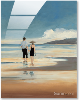 안방 커튼 색감이랑 붙박이장 색감이 페퍼민트와 브라운인데, 이 그림을 보는 순간 딱 이거다 싶었네요. 다정하게 해변에 나란히 서 있는 연인과 반려견의 분위기도 너무도 따뜻합니다. 대만족입니다!